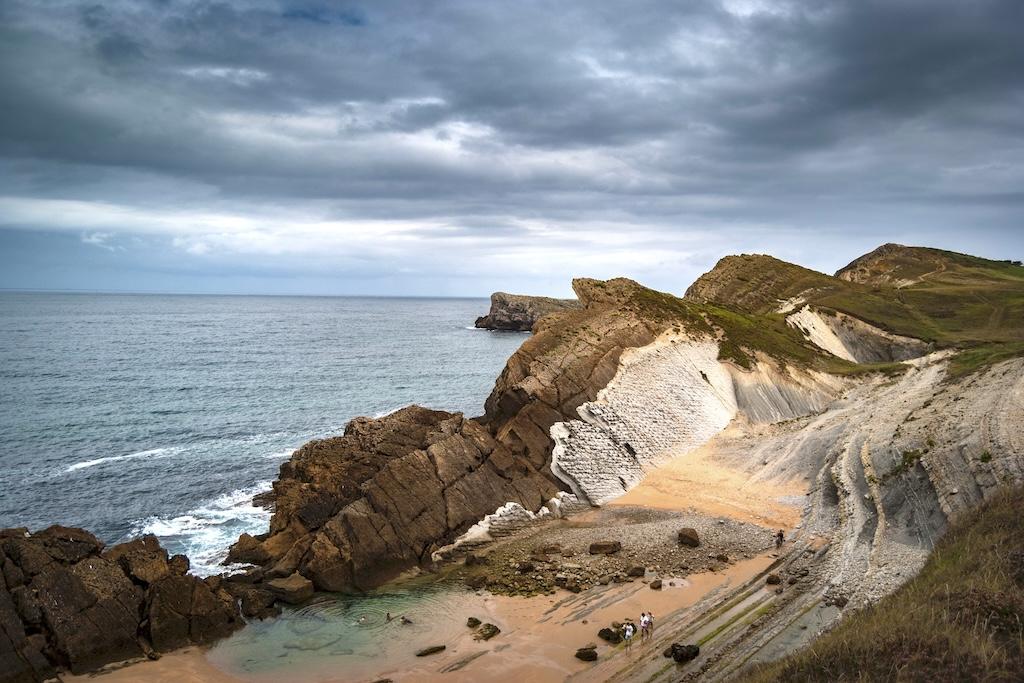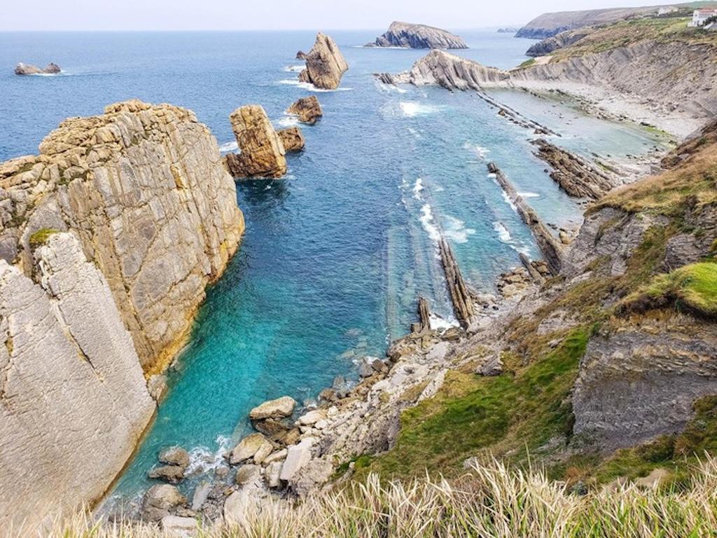 Estos pliegues de roca caliza y arenisca son el resultado de millones de años de movimientos tectónicos y erosión marina, lo que convierte este lugar en un auténtico museo geológico al aire libre. Desde aquí, el sendero discurre sobre los acantilados, ofreciendo continuas vistas al mar Cantábrico y a las pequeñas calas que se esconden bajo los cortados.