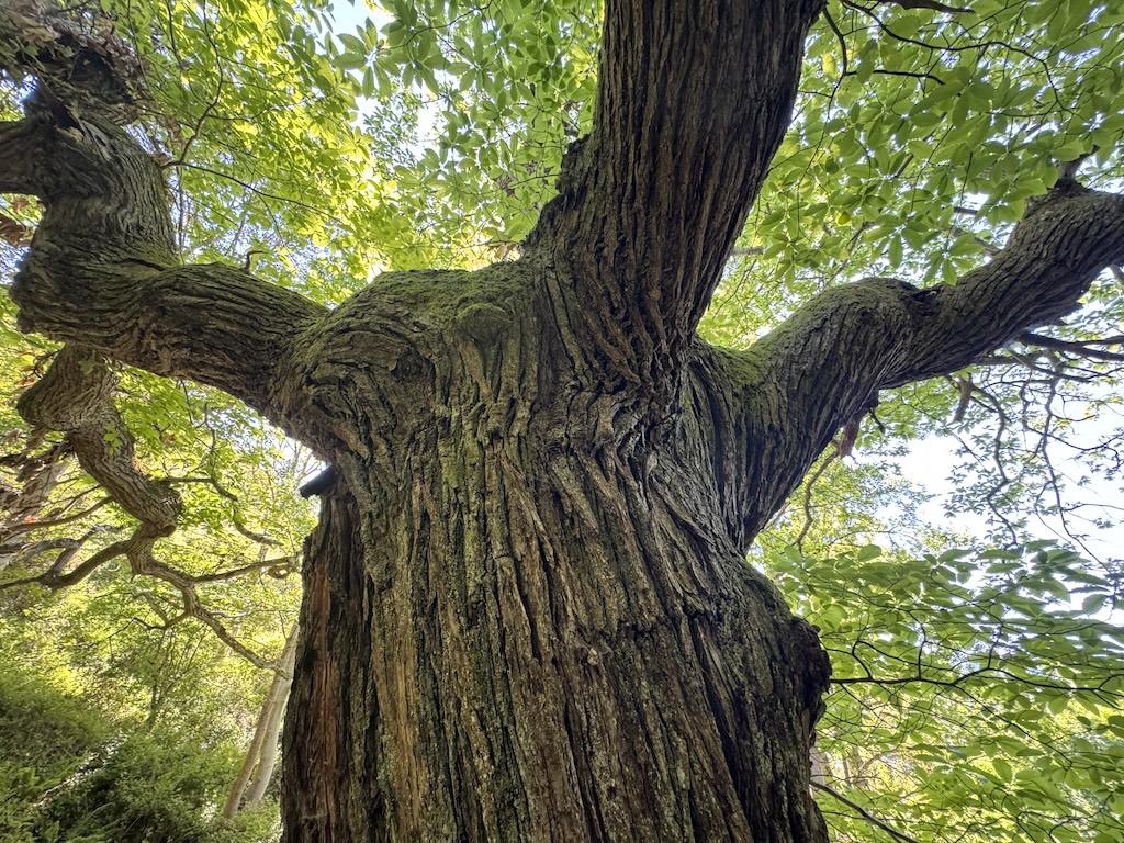 Luego subiéremos a la umbría del barranco, lugar conocido como Las Fuentes, donde una fresca vorágine rodea al Castaño de La Nísia (773m., 1,3Km). Árbol Singular de La Rioja, se le estima una edad de 400 años, tiene un tronco de 6,3m de perímetro y una copa de 18,8m de diámetro.