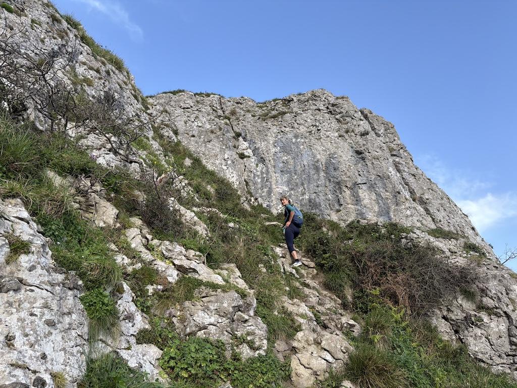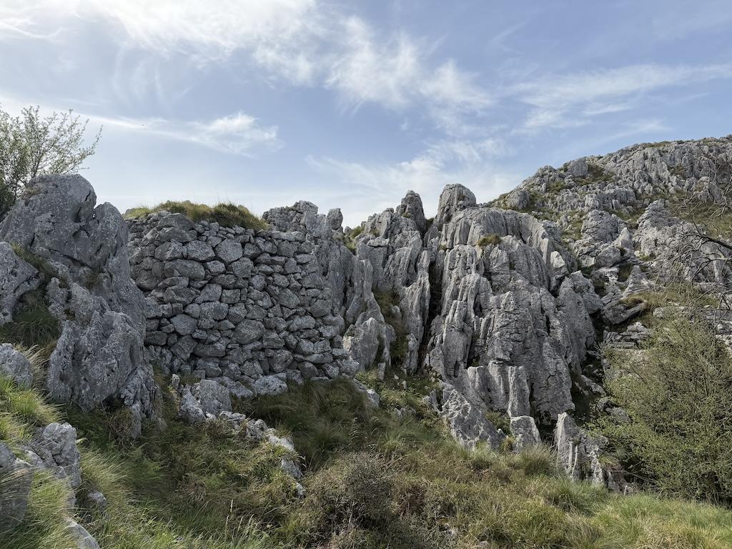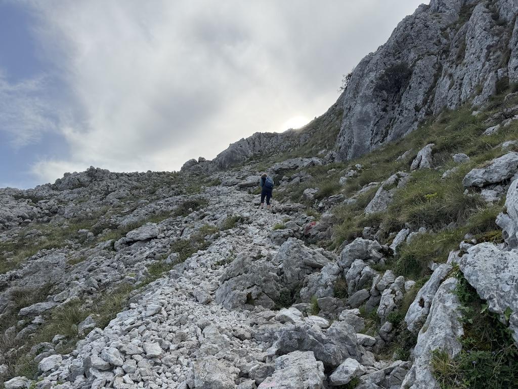 A medida que se avanza, el terreno cambia y se vuelve más rocoso, entrando en un entorno kárstico característico del Monte Candina.