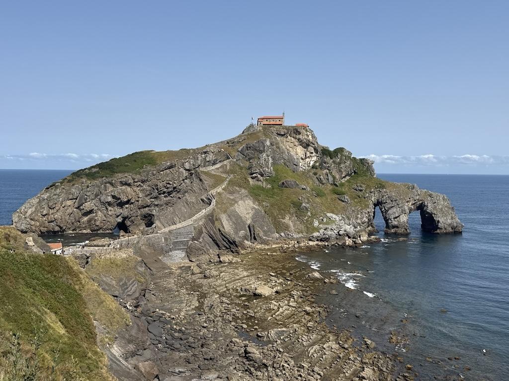 Las vistas desde arriba vale la pena la subida ya que veremos un paisaje natural impresionante de acantilados escarpados, el mar Cantábrico azotando las rocas, y la pequeña ermita en la cima del islote, además de la costa hasta el Cabo Matxitxako, con calas escondidas y una rica fauna marina.